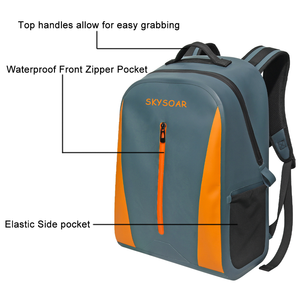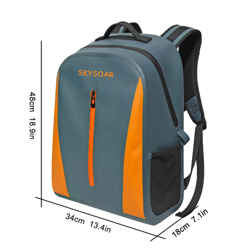 This SKYSOAR waterproof backpack is engineered from premium 600D TPU fabric, delivering reliable waterproof performance to protect your gear from rain, splashes, and moisture. Measuring 48x34x18cm, it offers spacious storage for laptops, clothes, and daily essentials, with a wide opening design for easy access to your items.